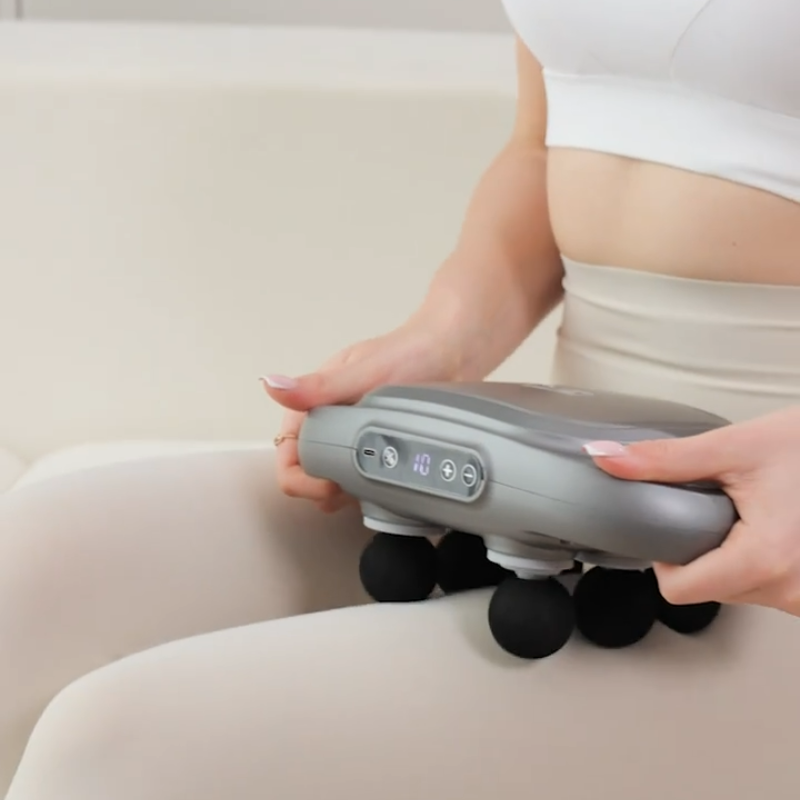 Masażer wyposażony jest w cichy silnik bezszczotkowy, a poziom hałasu to około 45 dB, co pozwala na komfortowe użytkowanie.